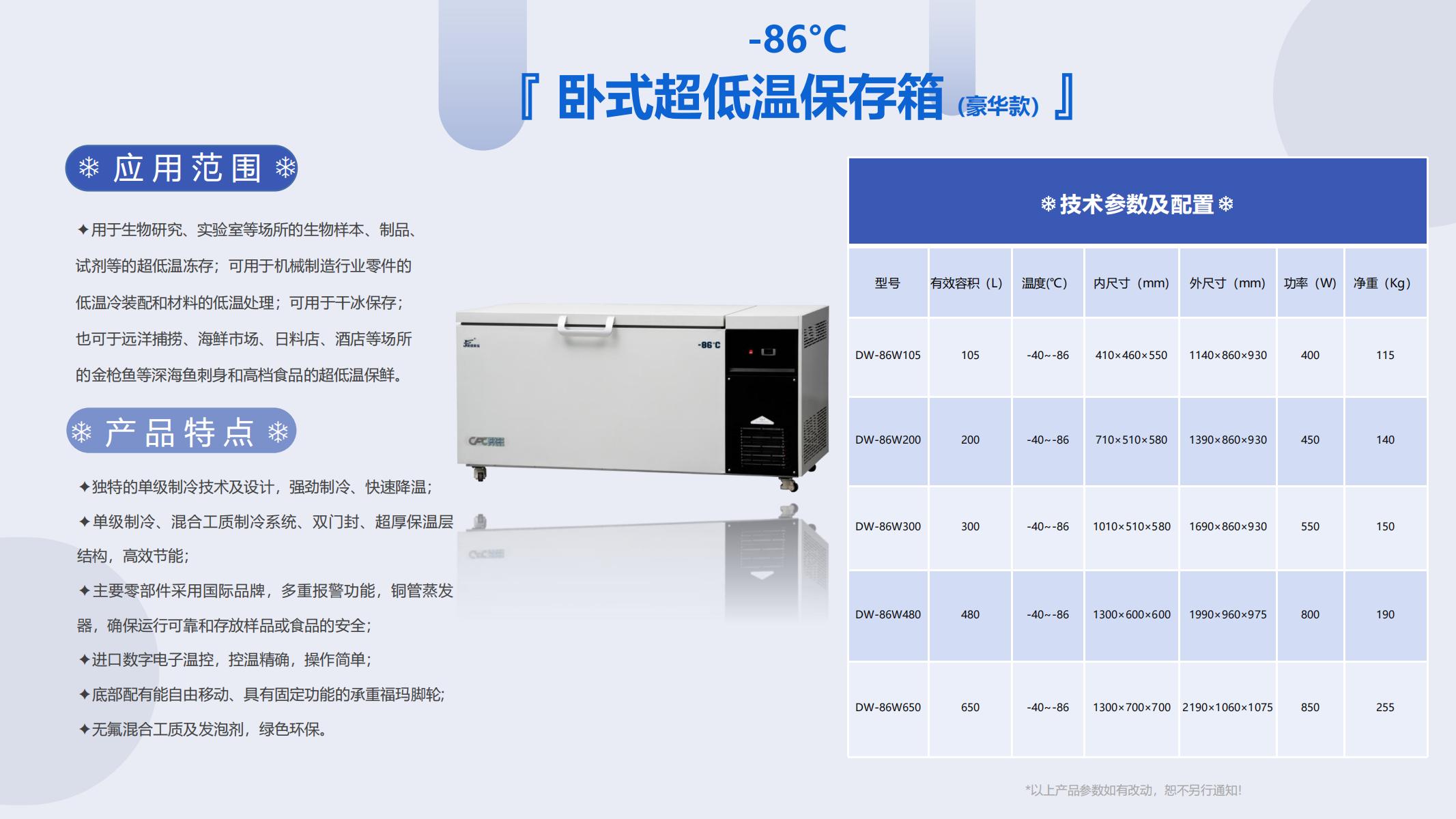 -86°C 『 卧式超低温保存箱(豪华款)』DW-86W650